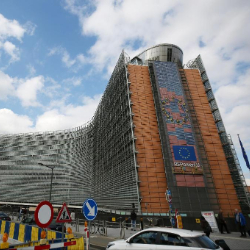 这是2024年10月4日在比利时布鲁塞尔拍摄的欧盟委员会大楼。新华社记者赵丁喆摄