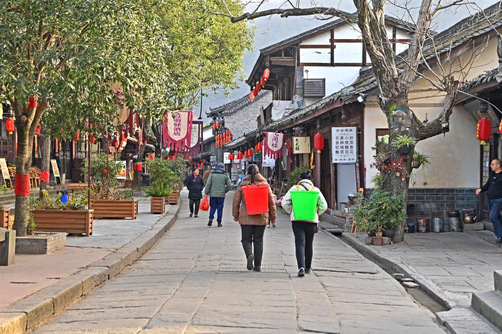 游客在昭化古城内拍照留影(2025年12月13日摄)。