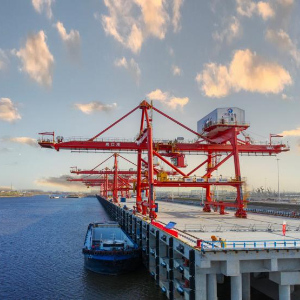 据悉,作为河南内河航运高质量发展的标志性工程,周口港中心港区中心作业区是河南首个按照百万级专用集装箱码头建设的高标准项目。项目整体规划建设22个2000吨级泊位,一期建成13个,年综合通过能力达176万标箱,是目前河南泊位数量最多、占地面积最广的内河集装箱专用码头。