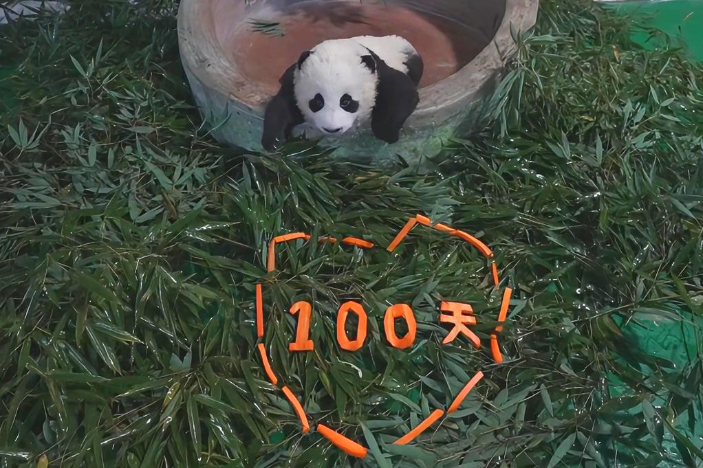 这是大熊猫“曼兰仔”的100天照片。新华社发