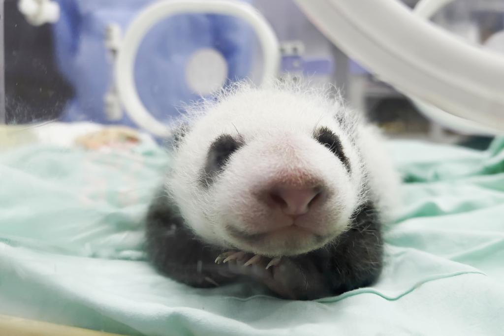 这是大熊猫“曼兰仔”满月时的官宣照。新华社发