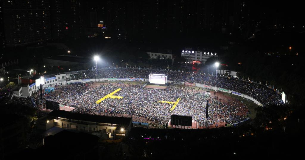 都有数万人聚集在永州市体育场