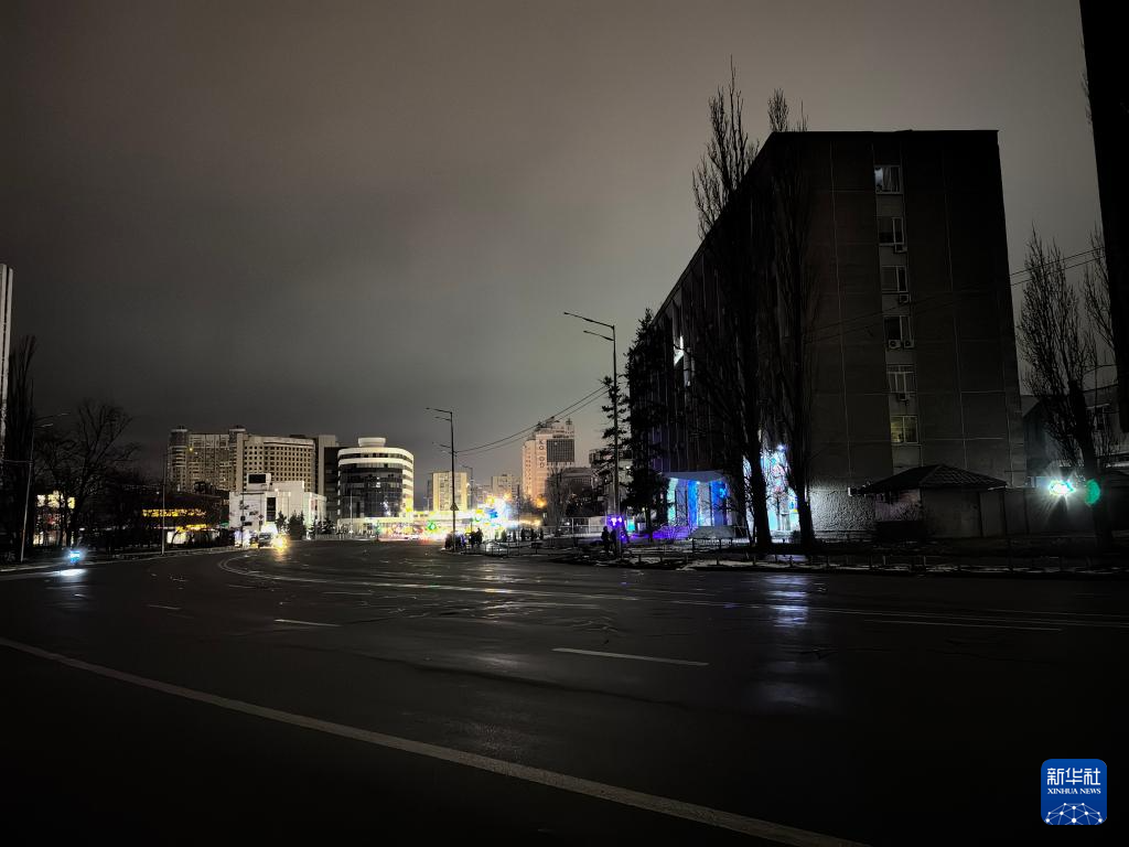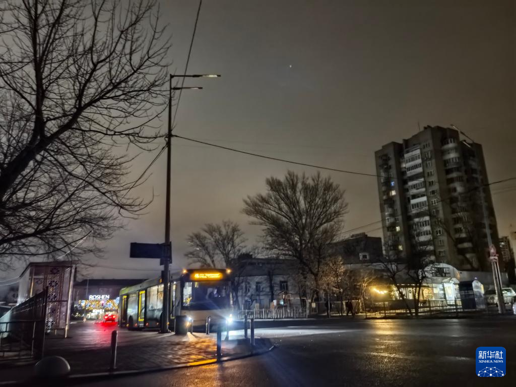 这是12月27日拍摄的停电期间的乌克兰基辅市第聂伯区街道。新华社记者 李东旭 摄