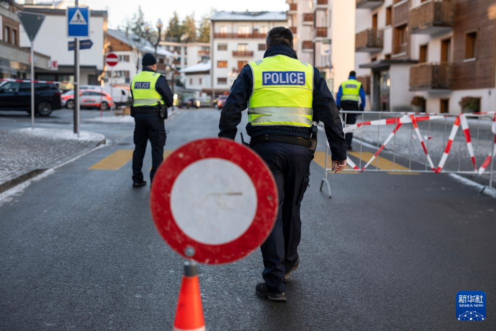 2026年1月1日,警察在瑞士瓦莱州克朗-蒙大拿发生爆炸的酒吧附近执勤。新华社/美联