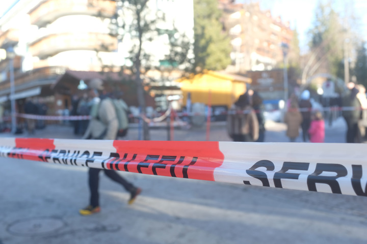 1月1日,在瑞士克朗-蒙大拿,警方在发生火灾的酒吧附近区域拉起警戒线。新华社记者连漪摄