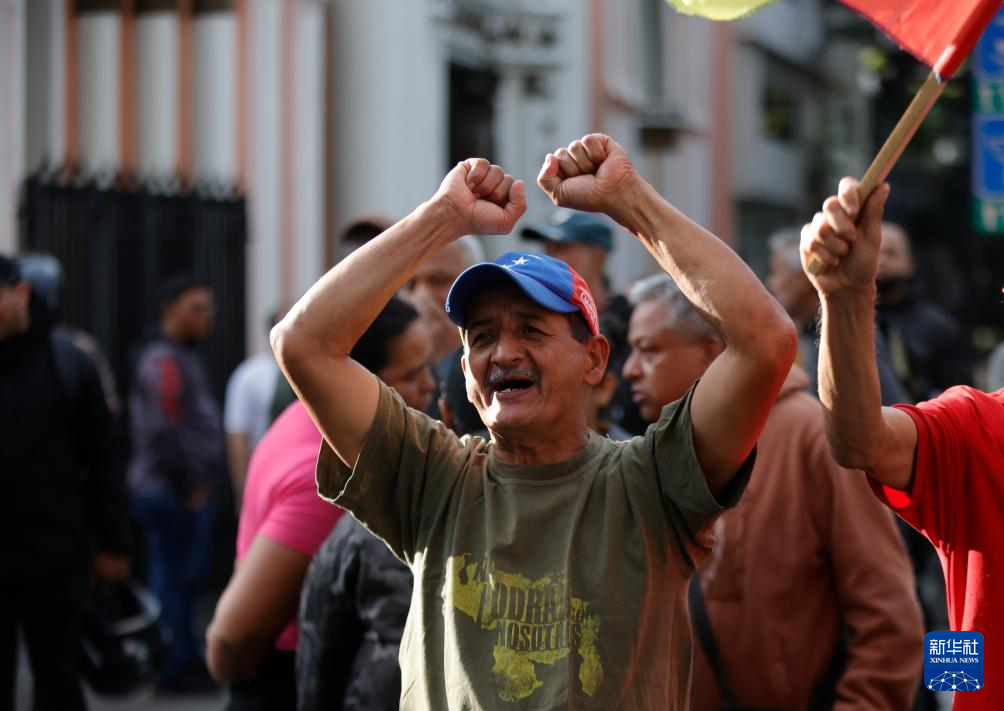 1月3日,民众在委内瑞拉首都加拉加斯的总统府附近抗议。新华社发