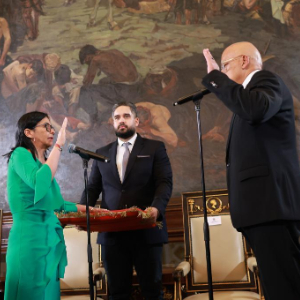 1月5日下午,委内瑞拉代理总统德尔西·罗德里格斯在该国全国代表大会宣誓就任委临时总统。新华社发(委内瑞拉总统府供图)