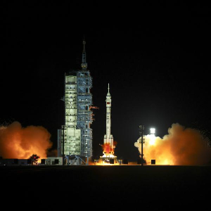 ↑2025年10月31日晚,搭载神舟二十一号载人飞船的长征二号F遥二十一运载火箭在酒泉卫星发射中心点火发射。新华社发(汪江波 摄)