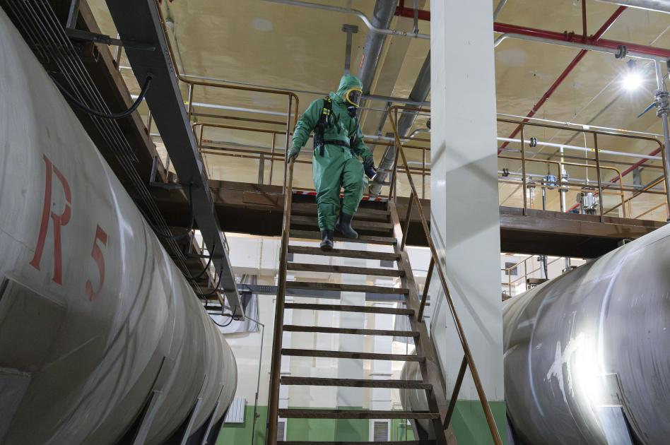 ↑2025年11月24日,工作人员在加注库区进行推进剂加注前检查。新华社记者 李明刚 摄