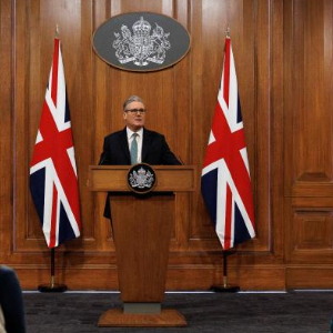 1月19日,英国首相斯塔默在伦敦举行的新闻发布会上讲话。新华社发(英国首相府供图)