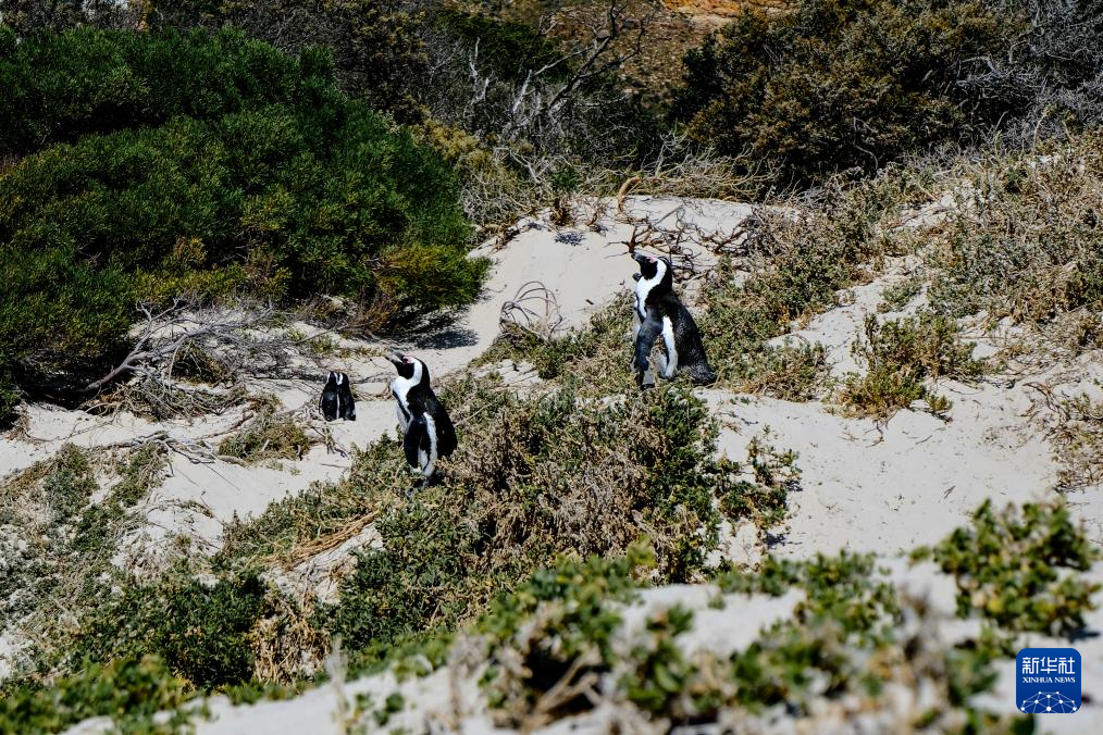 这是1月24日在南非开普敦西蒙镇海滩上拍摄的非洲企鹅。 新华社记者 邓冰雪 摄