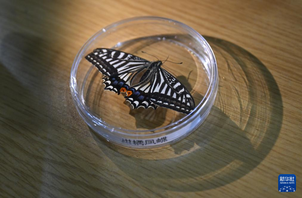 2月2日,在重庆大学深空探测联合研究中心,研究人员展示柑橘凤蝶标本。新华社记者 陈诚 摄