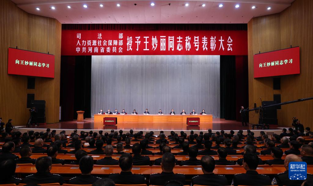2月4日,司法部、人力资源社会保障部、河南省委在郑州召开表彰大会,授予王妙丽同志“全国司法行政系统一级英雄模范”“河南省优秀共产党员”称号。这是2月4日拍摄的表彰大会现场。 新华社记者 殷刚 摄