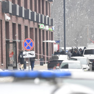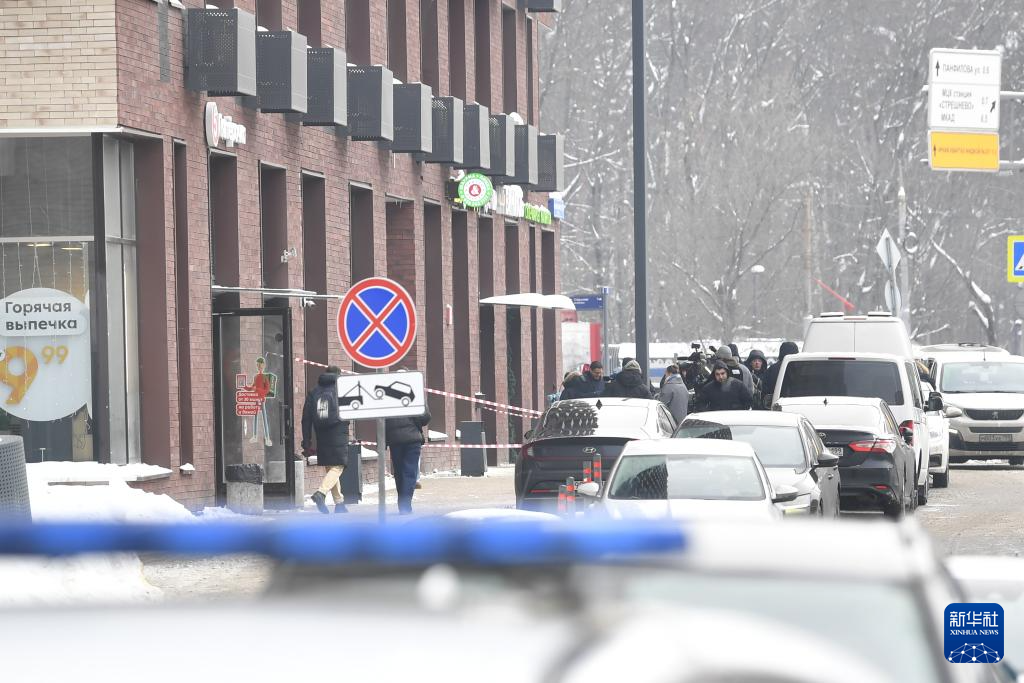 2月6日,在俄罗斯首都莫斯科,枪击现场遭封锁。新华社发(亚历山大摄)