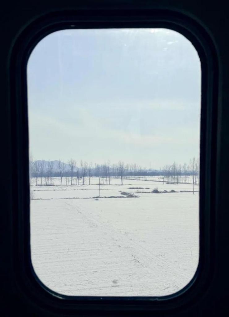 列车一路向北,窗外是被雪裹住的山。家的温度,好像已经顺着铁轨,暖到了心里。@今天有好事发生