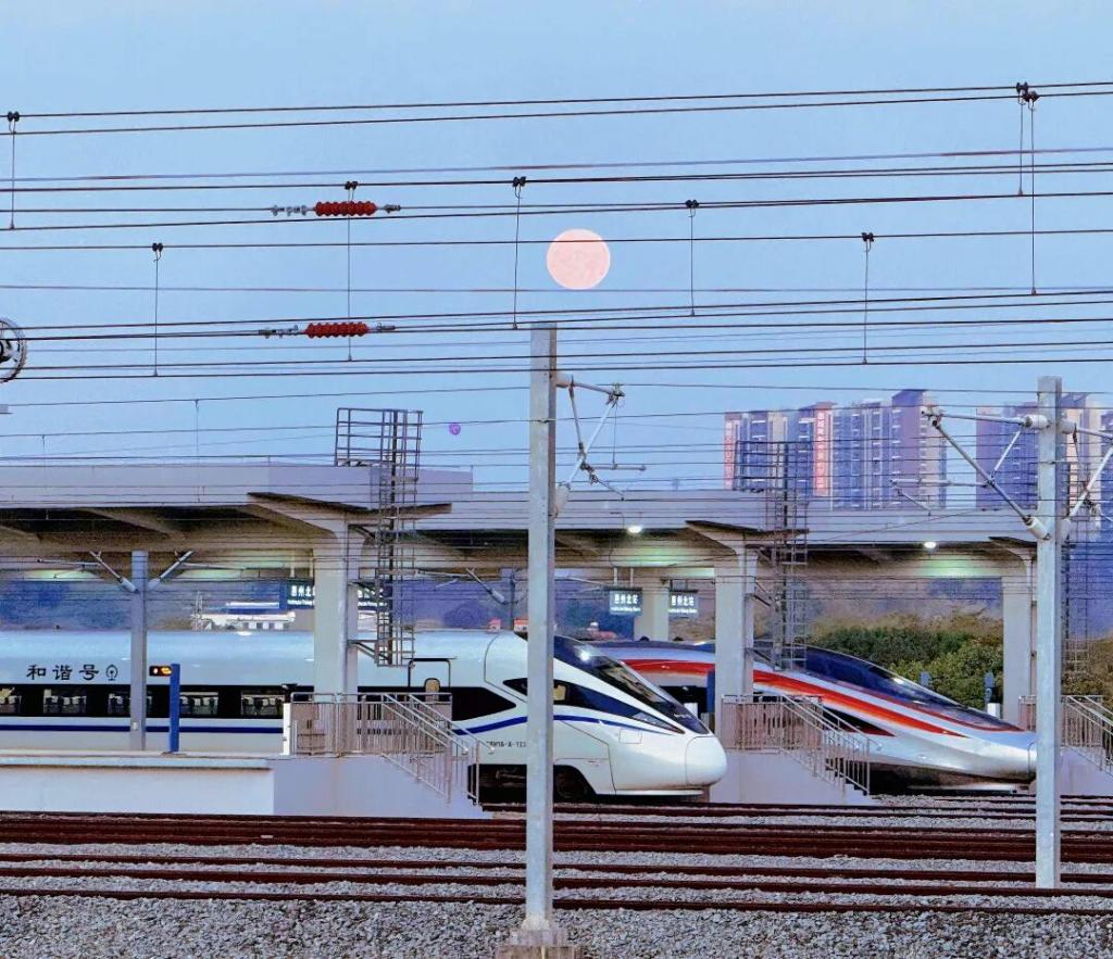 早上出乘惠州北时,拍到月亮与车组在一起的时刻。@SZH