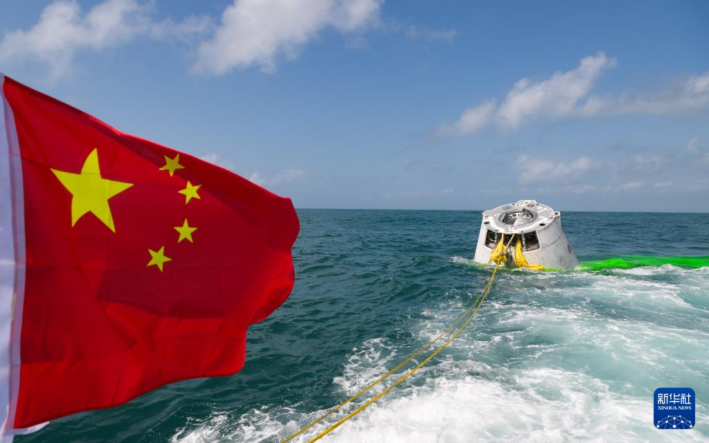 2月11日,梦舟载人飞船返回舱按程序受控安全溅落于预定海域。新华社发(王衡 摄)