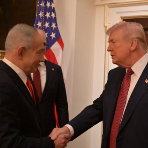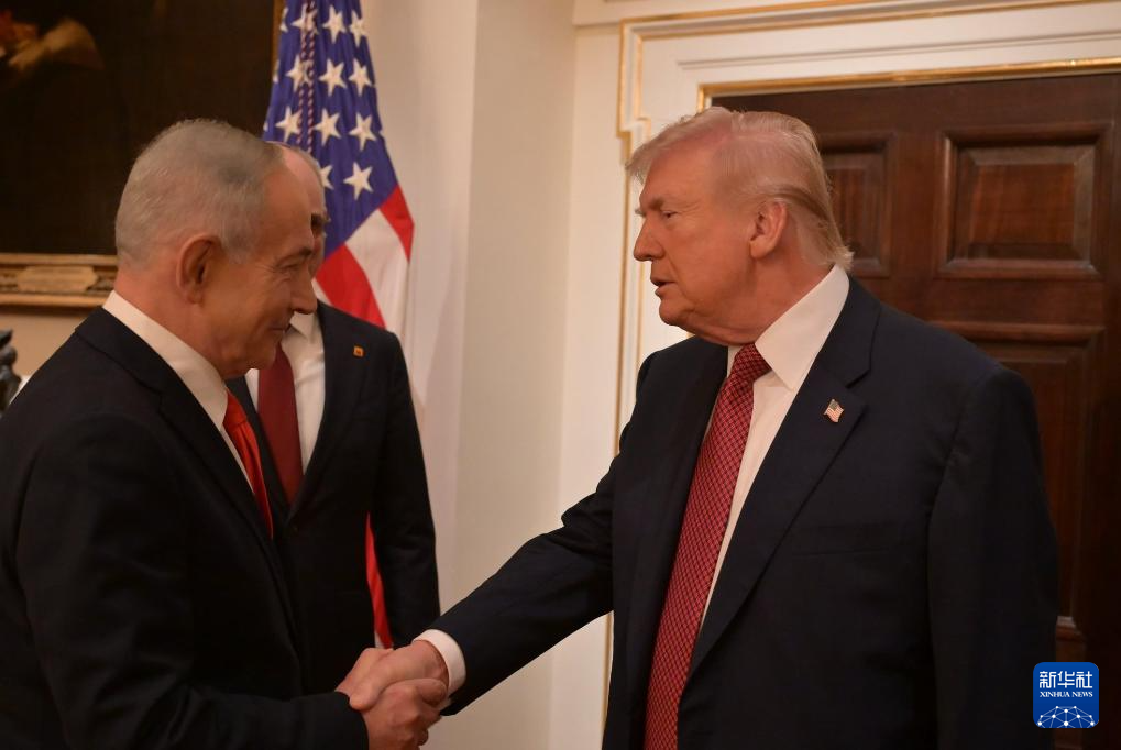 2月11日,在美国首都华盛顿白宫,美国总统特朗普(右)迎接到访的以色列总理内塔尼亚胡。新华社发(以色列政府新闻办公室供图)