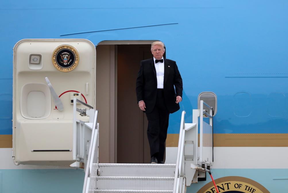 2017年5月4日,在美国纽约肯尼迪机场,美国总统特朗普走出专机“空军一号”。新华社记者王迎摄