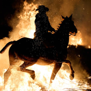 每年1月,圣安东尼节前夜的传统活动中,当地人都会点燃火堆,让骏马在骑手引导下穿越火焰。人们相信,火焰具有净化之力,在新的一年里牲畜不会染病,人们也将迎来安稳与丰收。