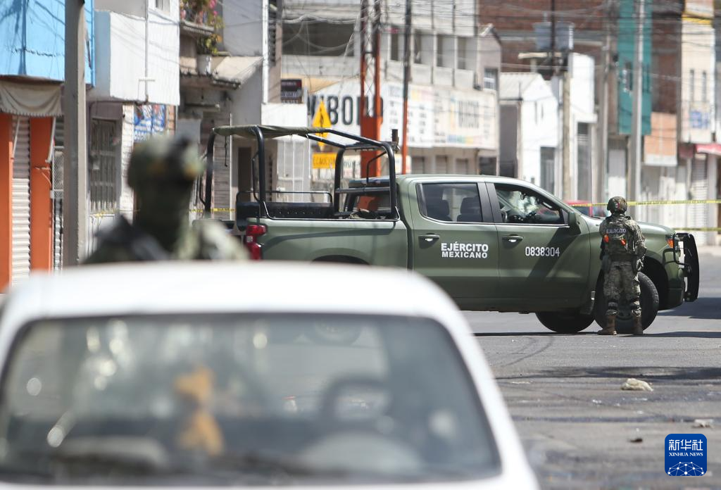 2月22日,士兵在墨西哥瓜纳华托州首府瓜纳华托街头警戒。新华社发