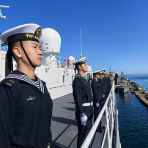 3月1日,执行“和谐使命-2025”任务的中国海军“丝路方舟”号医院船抵达智利瓦尔帕莱索港,医院船官兵分区列队。新华社发(崔晓洋摄)