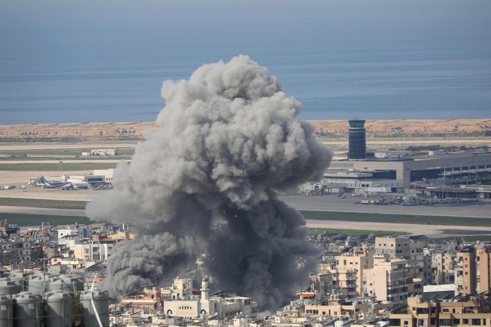3月4日,黎巴嫩贝鲁特南郊的拉菲克·哈里里国际机场附近被以军导弹击中后升起浓烟。当日,贝鲁特南郊部分地区再遭以军轰炸。新华社发(比拉尔·贾维希摄)