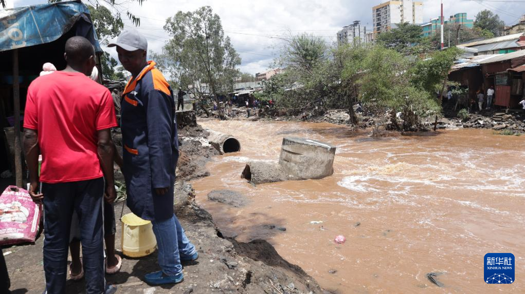 3月7日,在肯尼亚首都内罗毕,强降雨导致的洪水将一处河道旁的路基冲垮。新华社发(约翰·奥科约摄)