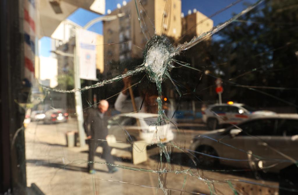 这是3月9日在以色列中部城市里雄莱锡安拍摄的一处遭袭现场。新华社发(吉尔·科恩·马根摄)