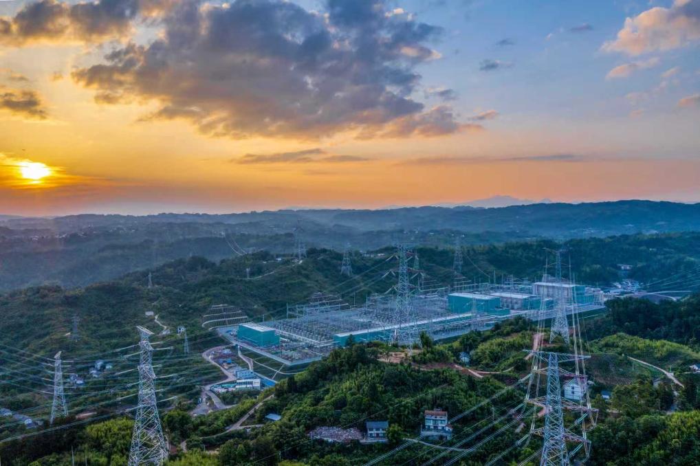 “疆电入渝”±800千伏渝北换流站鸟瞰图。(国网重庆市电力公司供图)