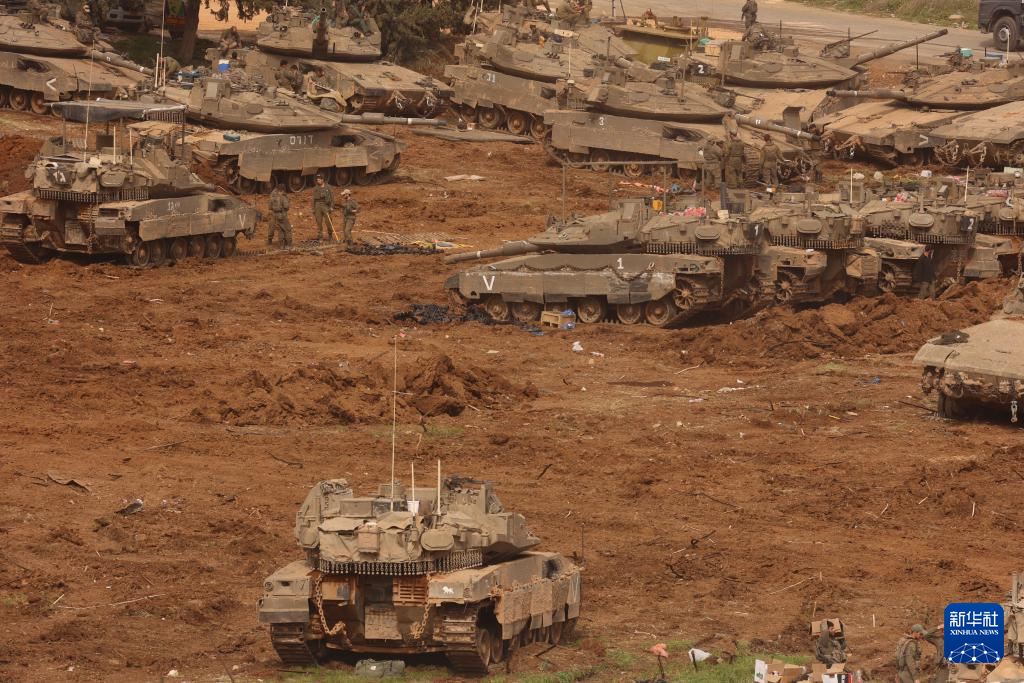 这是3月13日在以色列北部与黎巴嫩接壤的边境地区拍摄的以军集结部队。新华社发(吉尔·科恩·马根摄)