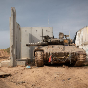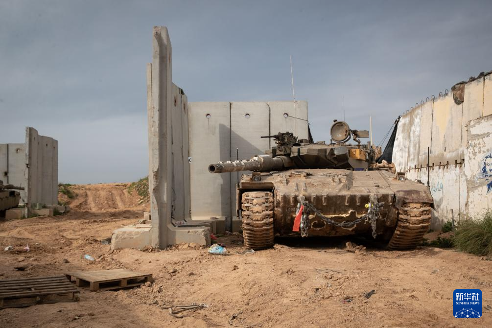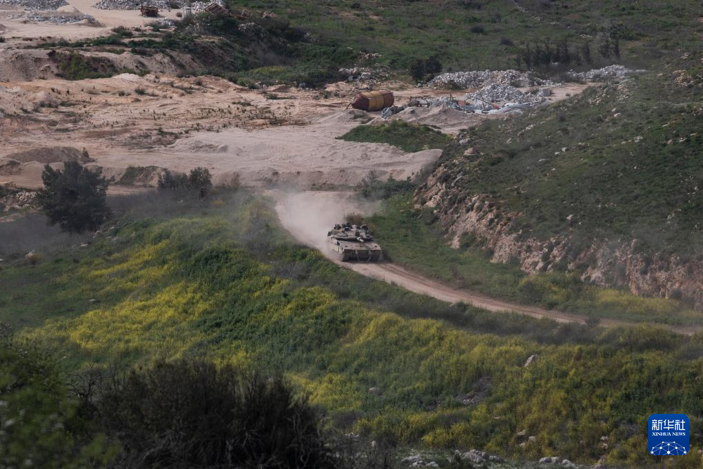 3月13日,记者在以色列北部边境地带拍摄到以军坦克在黎巴嫩境内活动。新华社记者 陈君清 摄