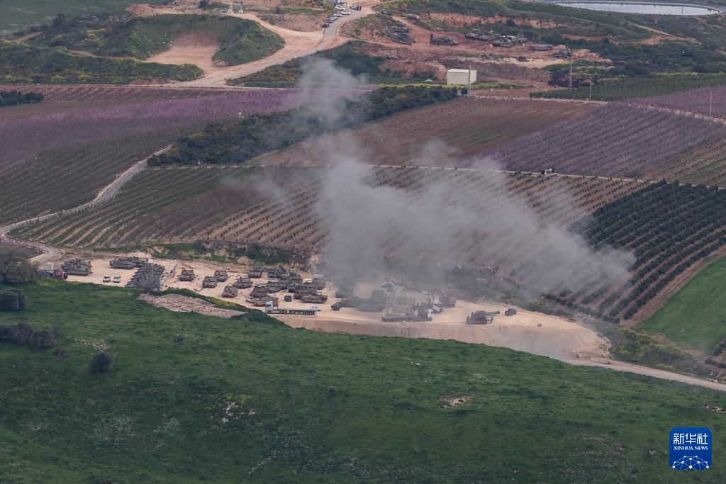 3月13日,以色列北部与黎巴嫩接壤的边境地区,以军一处集结点遭炮弹袭击。新华社记者 陈君清 摄