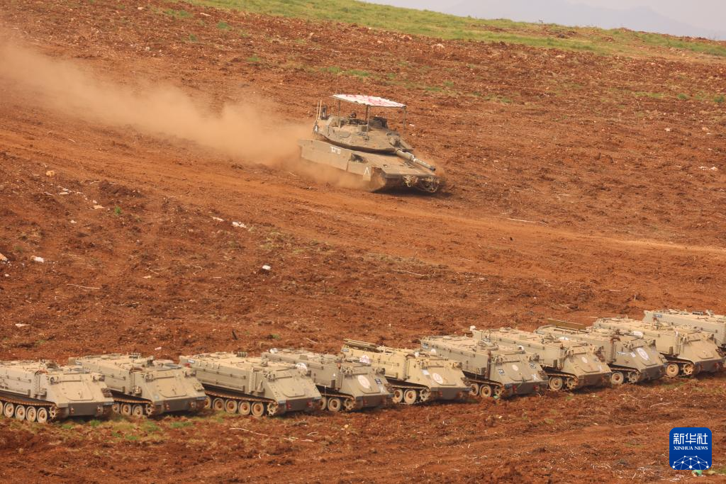 这是3月13日在以色列北部与黎巴嫩接壤的边境地区拍摄的以军部队。新华社记者 陈君清 摄