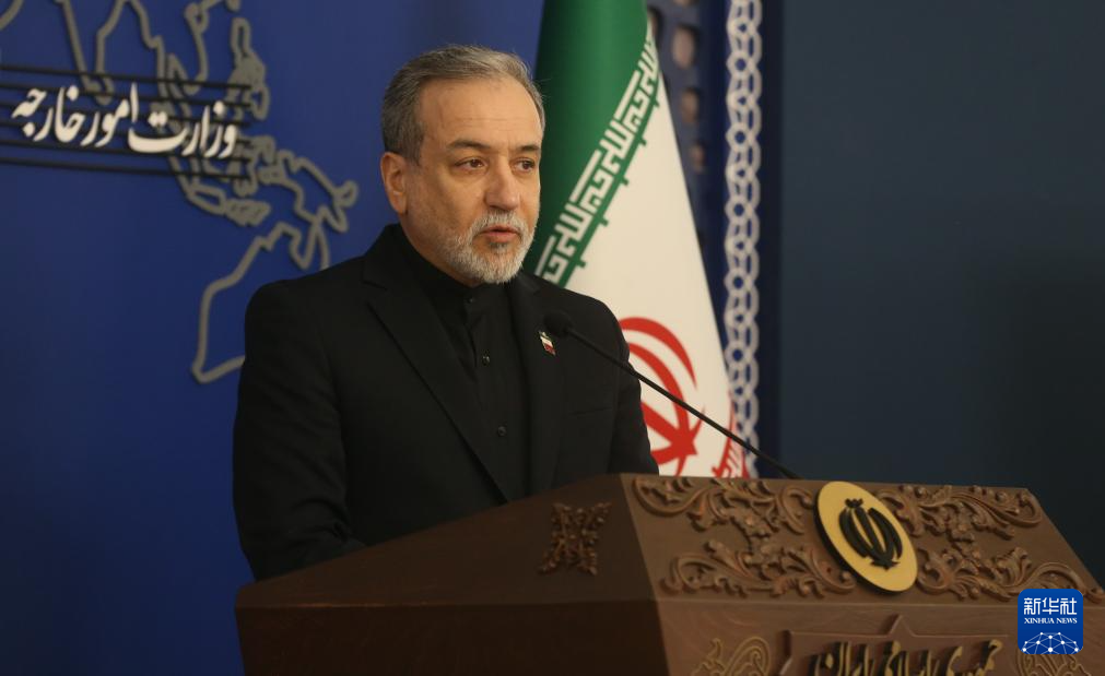 3月16日,伊朗外交部长阿拉格齐在首都德黑兰出席伊朗外交部举行的每周例行记者会。新华社记者 沙达提 摄