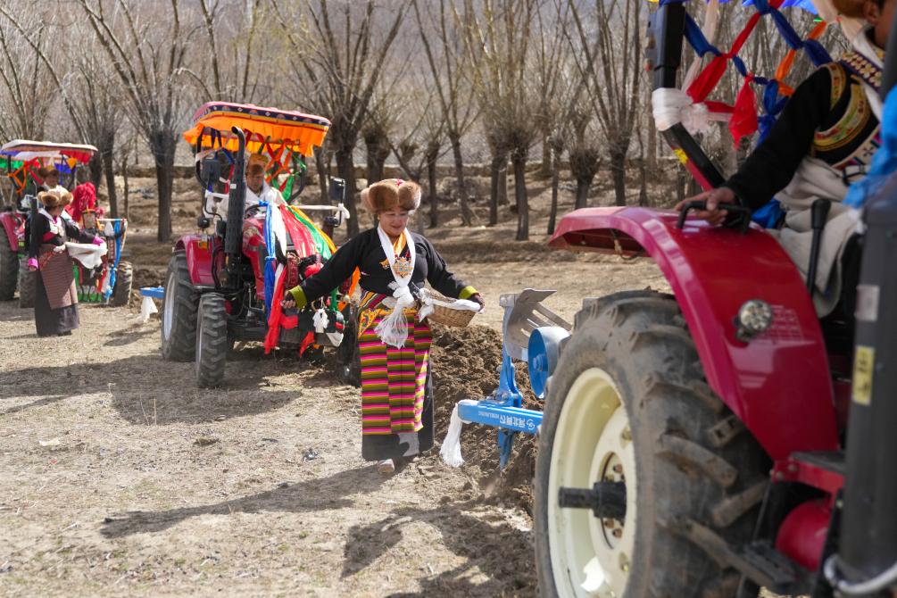 3月16日,山南市结巴乡结巴村举行春耕仪式。新华社记者晋美多吉 摄