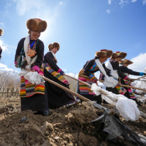 3月16日,藏历正月28日,西藏农区迎来一年一度的春耕开犁仪式。当天上午10时许,雅鲁藏布江畔的山南市结巴乡结巴村200多名村民身着盛装,扶老携幼来到田间地头,共迎这一盛大典礼。