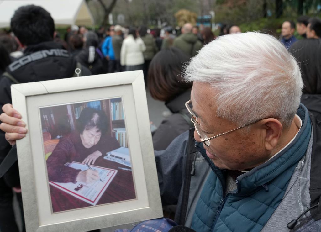 3月18日,人们前来送别于漪老师。 新华社记者 刘颖 摄