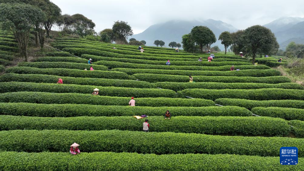 3月17日,茶农在广西昭平县昭平镇花六茶园采摘春茶。