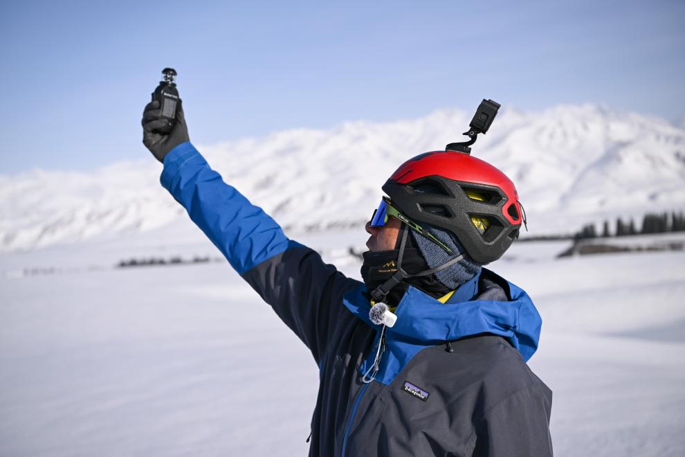 风筝滑雪者将雪崩信标装进贴身口袋,便于遇险时第一时间施救。新华社记者 胡虎虎 摄