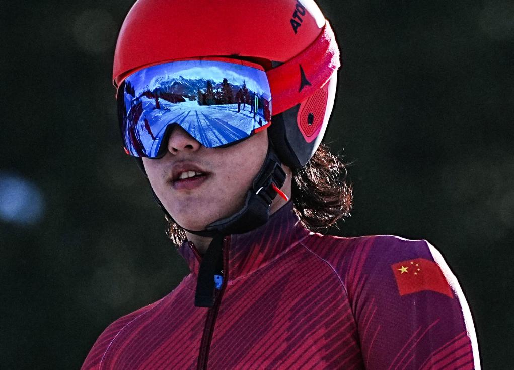 当地时间2026年2月12日,参加米兰-科尔蒂纳冬奥会高山滑雪男子大回转、回转比赛的中国男子高山滑雪运动员刘校辰在位于意大利博尔米奥的斯泰尔维奥滑雪中心进行训练。新华社记者 颜麟蕴 摄