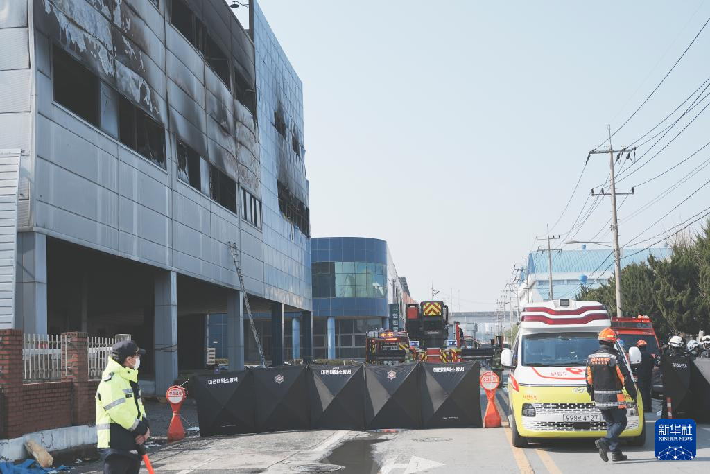 3月21日,救援人员在韩国大田工厂火灾现场工作。新华社记者 张粲 摄
