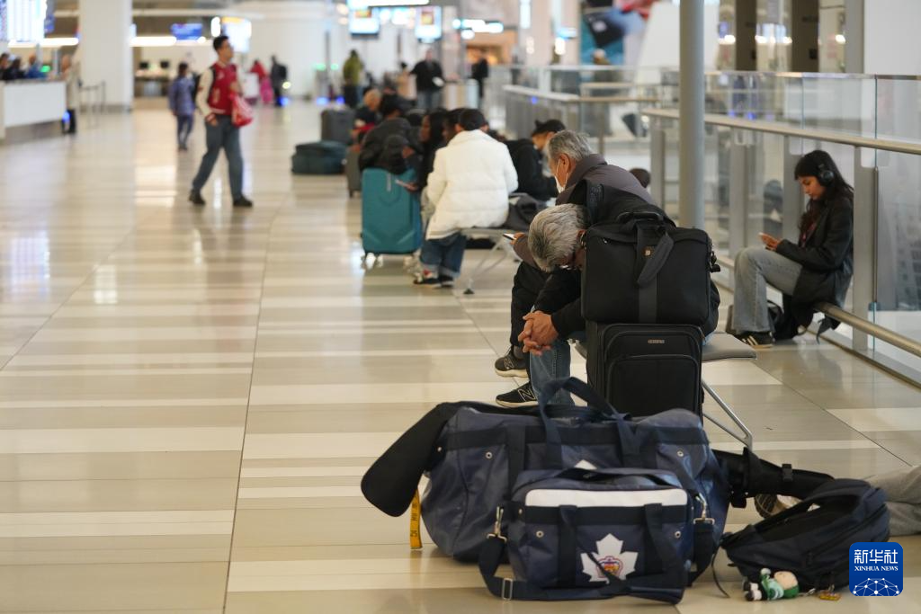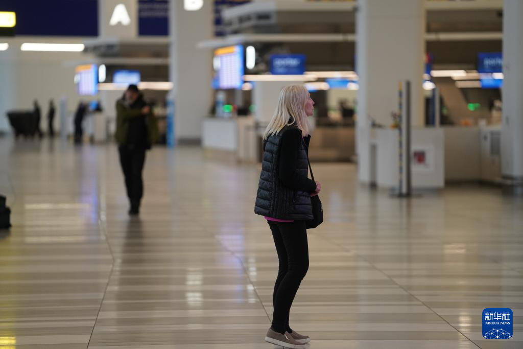 3月23日,在美国纽约拉瓜迪亚机场,乘客等候在出发大厅。新华社记者 张凤国 摄