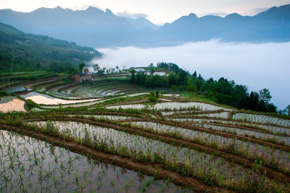 晨曦中的凤堰梯田(资料照片)。新华社发(邵向东摄)