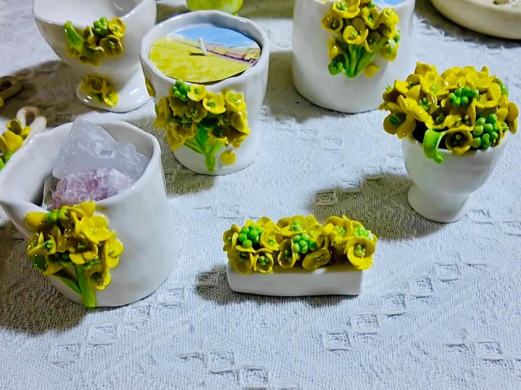 罗平县返乡创业青年韩绍华将油菜花元素融入陶瓷制作,设计出油菜花主题冰箱贴、餐具等文创产品。“希望把家乡的油菜花制作成可以被带走的产品,让市民、游客把春日的美好带回家。”
