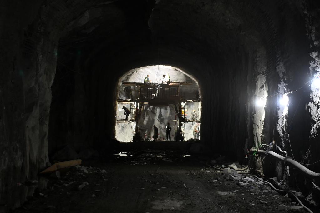 在北山实验室地下560米处作业平台,建设人员进行施工作业。新华社记者 范培珅 摄