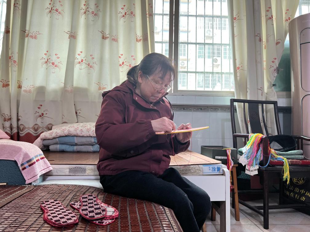 3月25日,张兴会在家中绣鞋垫。新华社记者 周文冲 摄