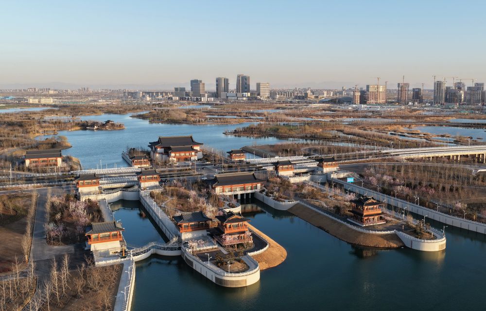 雄安新区南河枢纽景色(3月18日摄)。新华社记者 杨世尧 摄