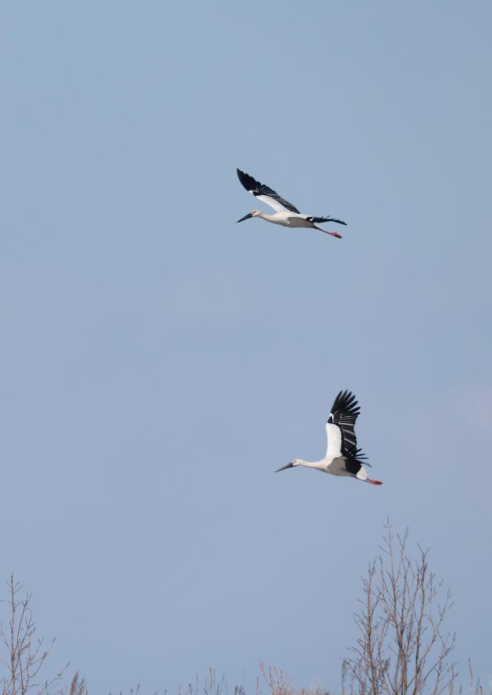 3月23日,一群东方白鹳在黑龙江三江国家级自然保护区上空飞翔。新华社发(李拥军 摄)