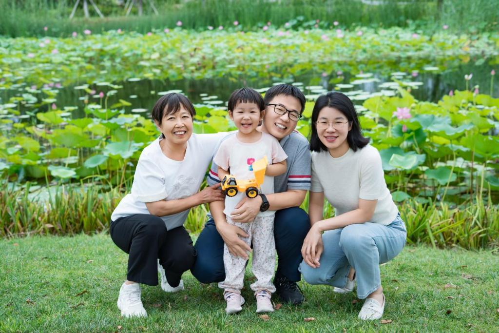 刘艳刚一家在雄安新区一处公园内游玩。(受访者供图)